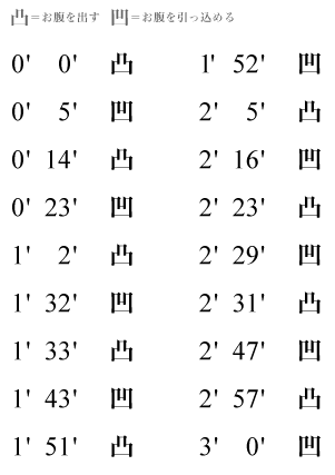 楽譜にかかれた凸でお腹を突き出し、凹で引っ込める。