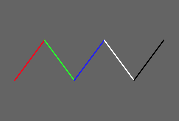 それぞれの色を担当する5人の参加者は、自分の色の線が引かれている間、