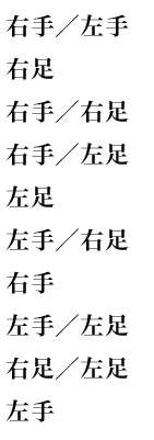 この曲が楽譜で指示するポーズは、両手足の位置の組み合わせだ。